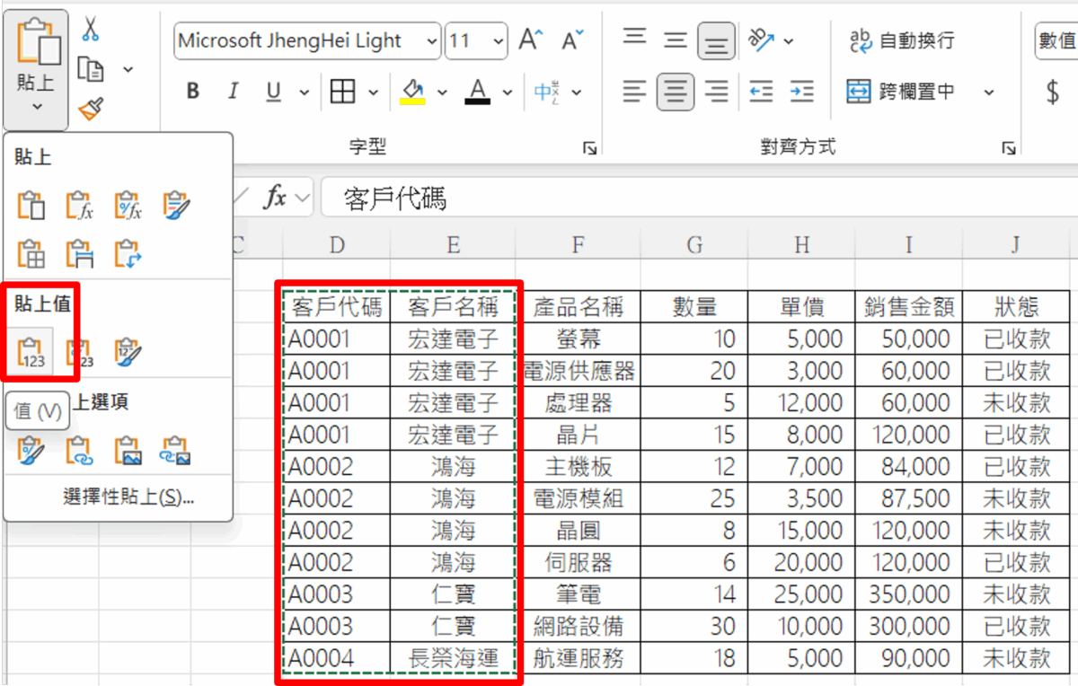 ⑤ 建議將產生公式的資料「複製 → 貼成值」,避免後續操作造成原始資料參照混亂。